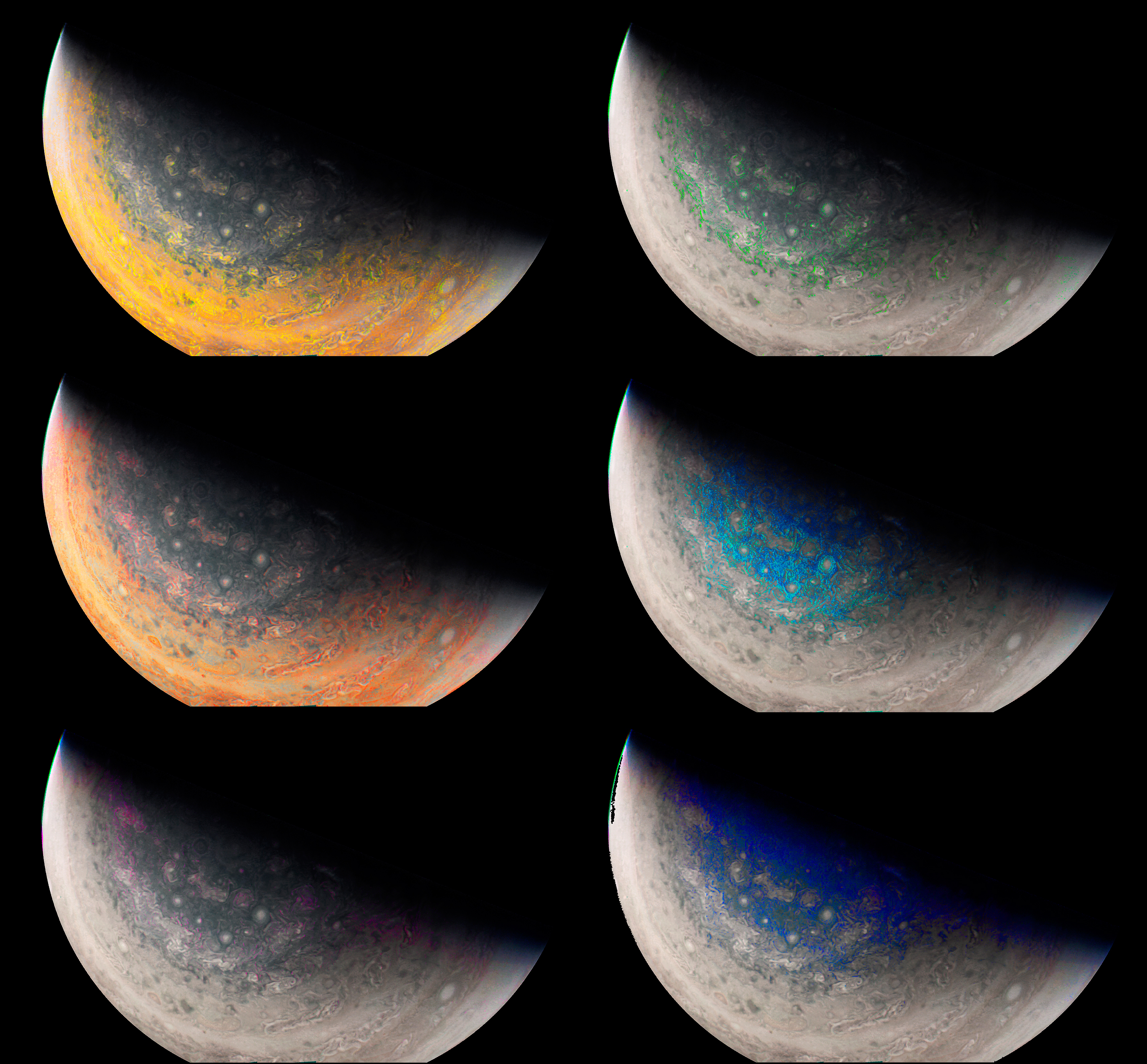 A special note about the Earth Flyby mission phase images: these were acquired in 2013 when Juno flew past Earth. Examples of processed images are shown; most contributions are from amateurs.