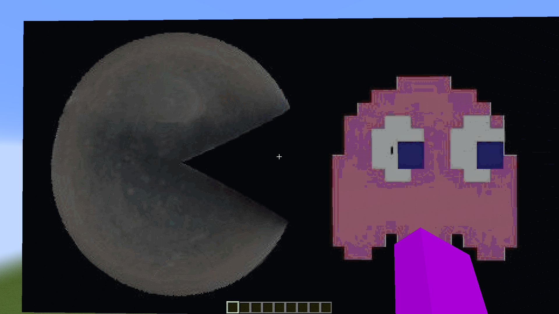 A Minecraft Pixel Art of Jupiter as Pac Man