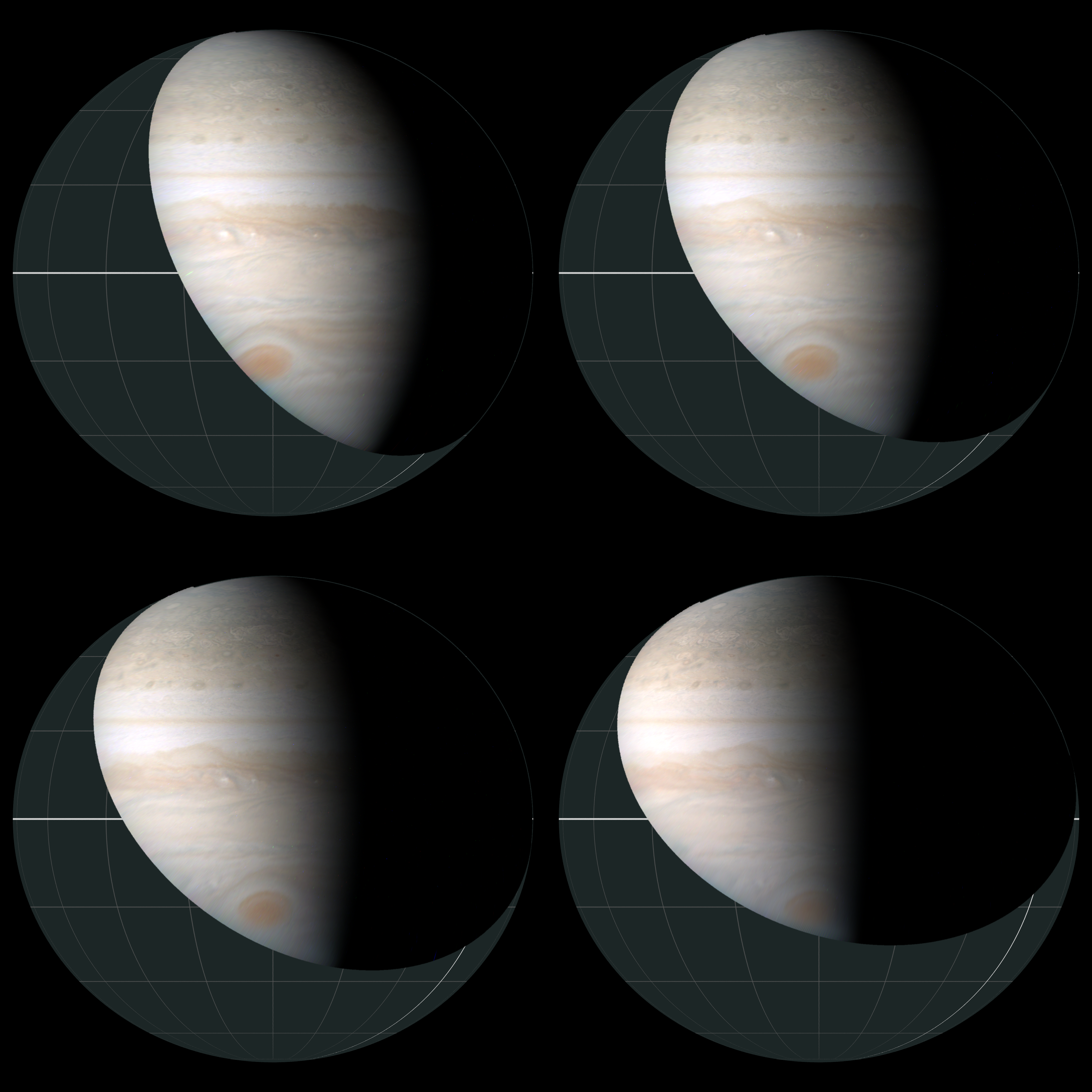 PJ44_23/25/27/29 Orthographic view over Great Red Spot