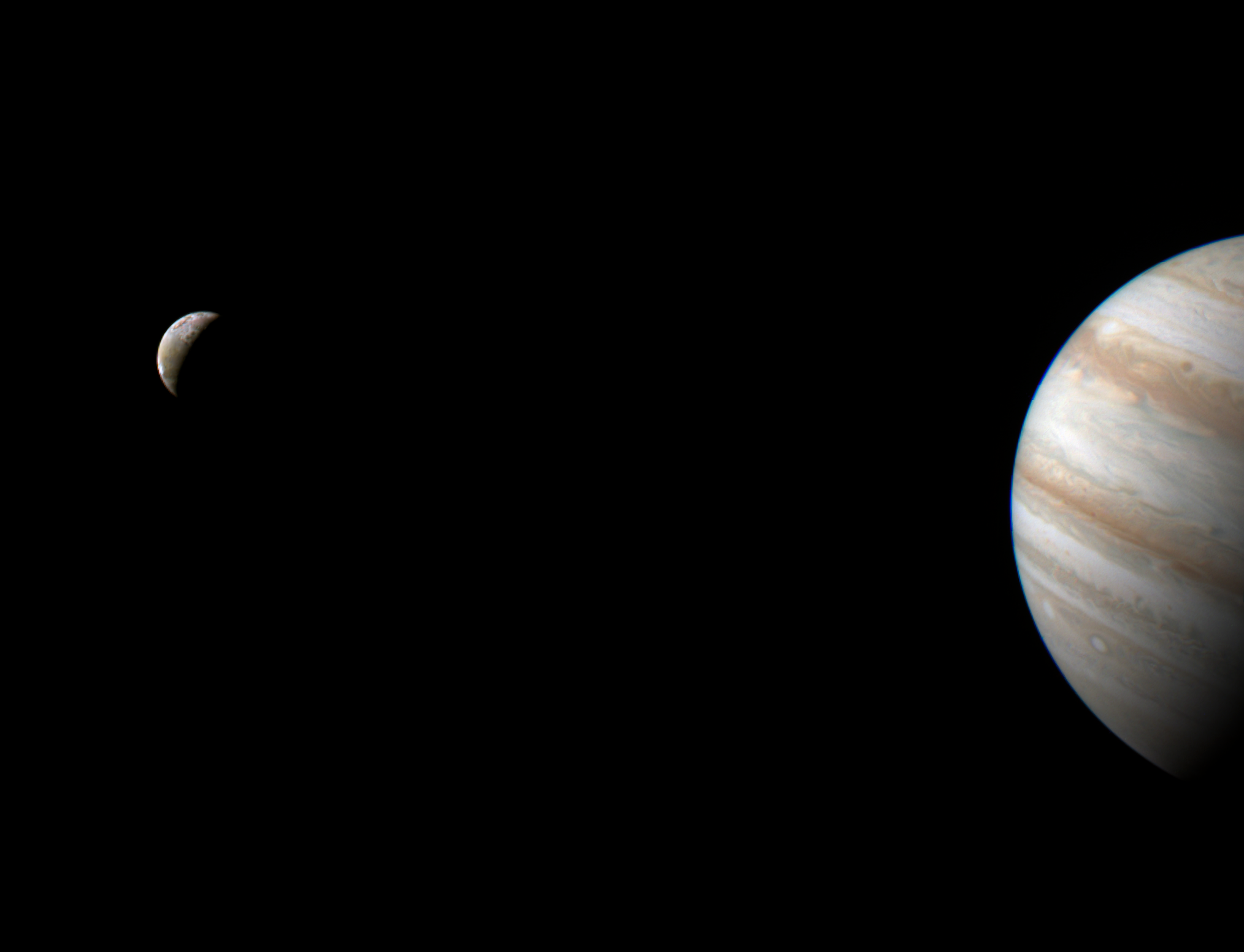 A special note about the Earth Flyby mission phase images: these were acquired in 2013 when Juno flew past Earth. Examples of processed images are shown; most contributions are from amateurs.