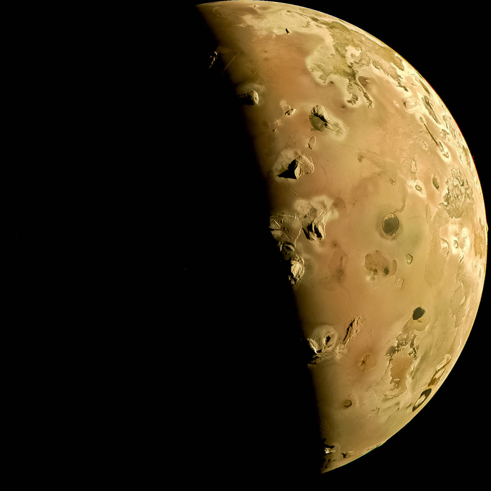 Processed from RGB pictures to enhance lit part of the moon. METADATA - PRODUCT ID : JNCE_2023364_57C00022_V01; SPACECRAFT ALTITUDE : 2839.6 km; SUB SPACECRAFT LATITUDE : 60.484; SUB SPACECRAFT LONGITUDE :346.8127; IMAGE TIME : 2023-12-30T08:37:44.609