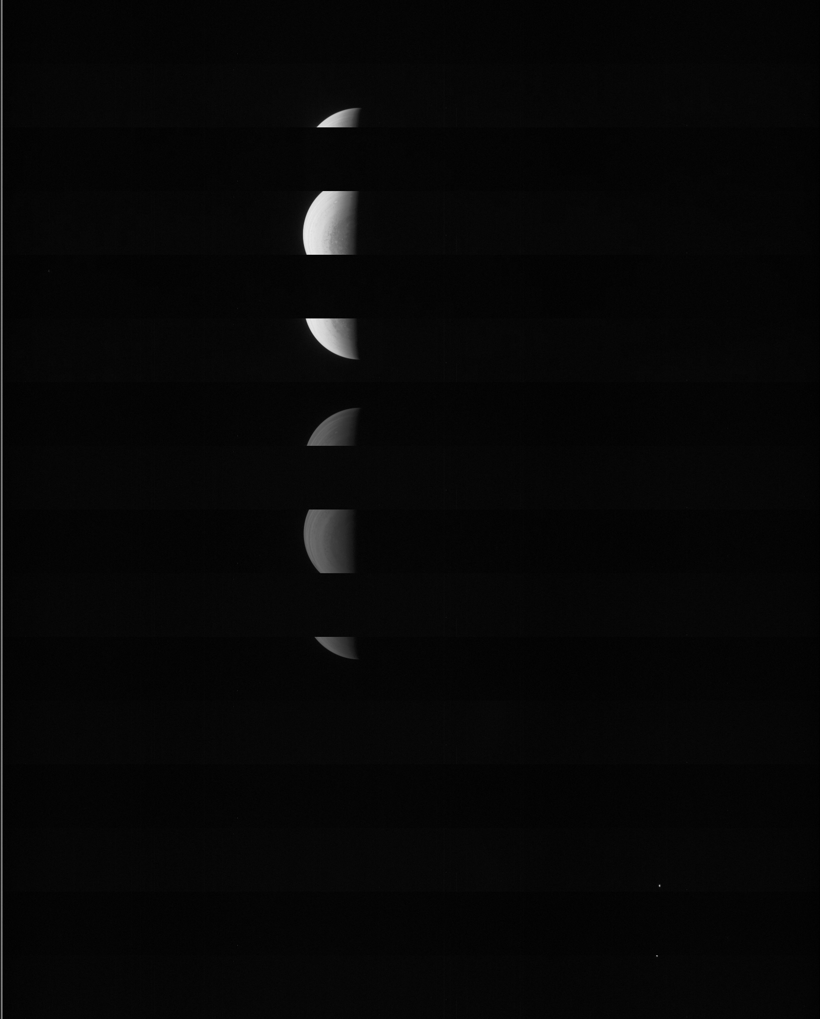 A special note about the Earth Flyby mission phase images: these were acquired in 2013 when Juno flew past Earth. Examples of processed images are shown; most contributions are from amateurs.