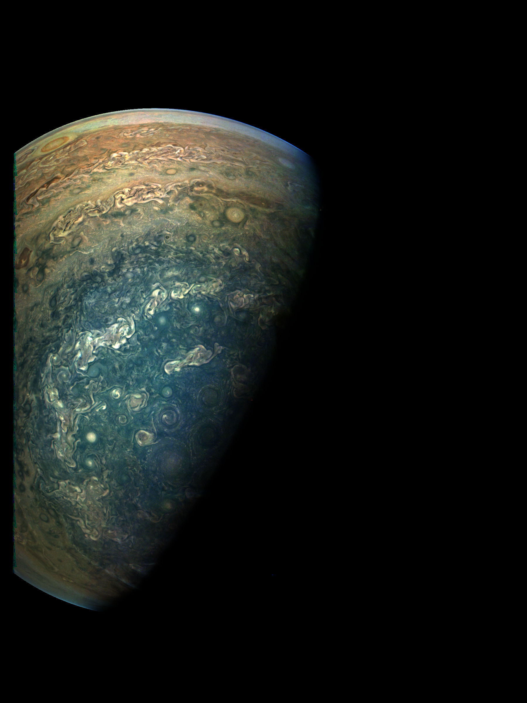 This image is reconstructed from JunoCam data taken during Juno's Perijove-09.