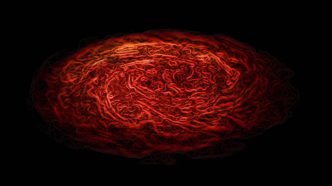 An artistically stylized image of the Great Red Spot making it look like a fabric or a brain