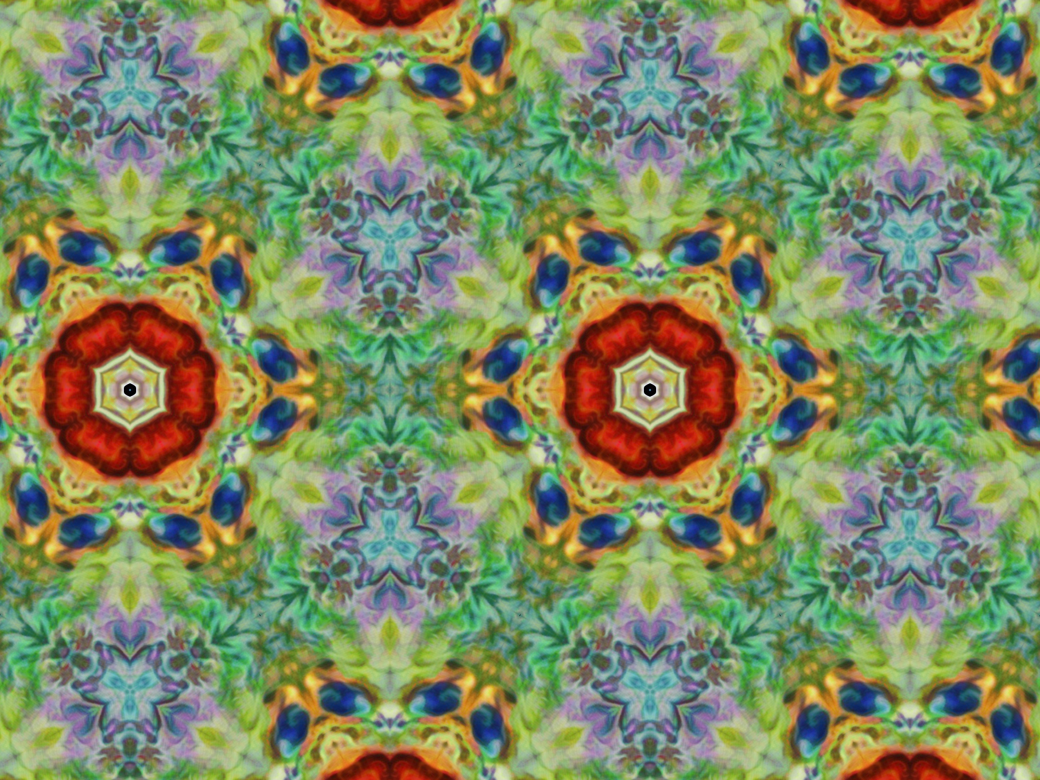 Detail of Colour enhanced multiple overlaid AI. pseudo painted layers and fractal remix layer with kaleidoscopic projection