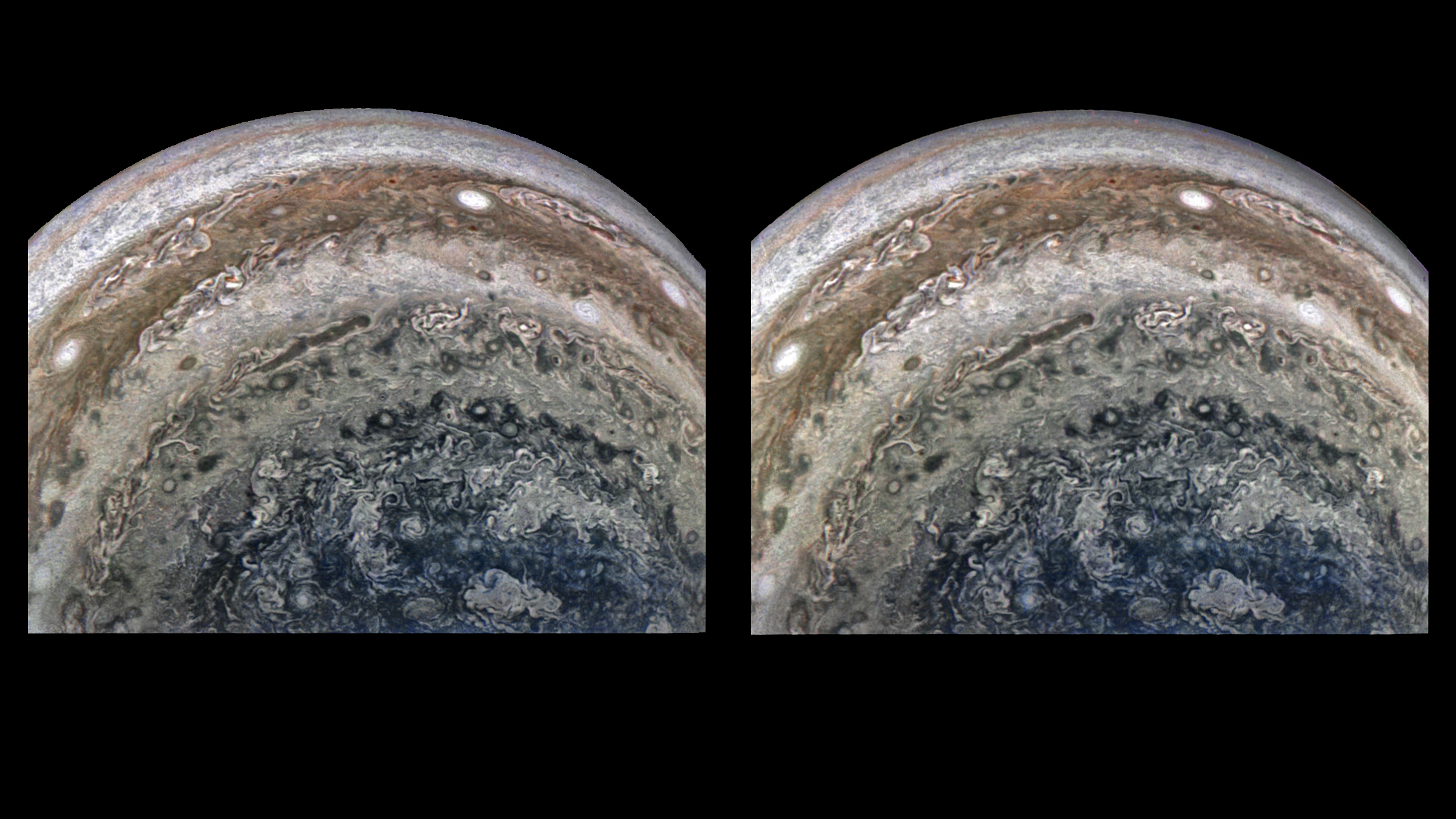 3D Stereograph of Jupiter from the South Pole PJ22 50 & 51 (for Cross-Eyed Viewing)
