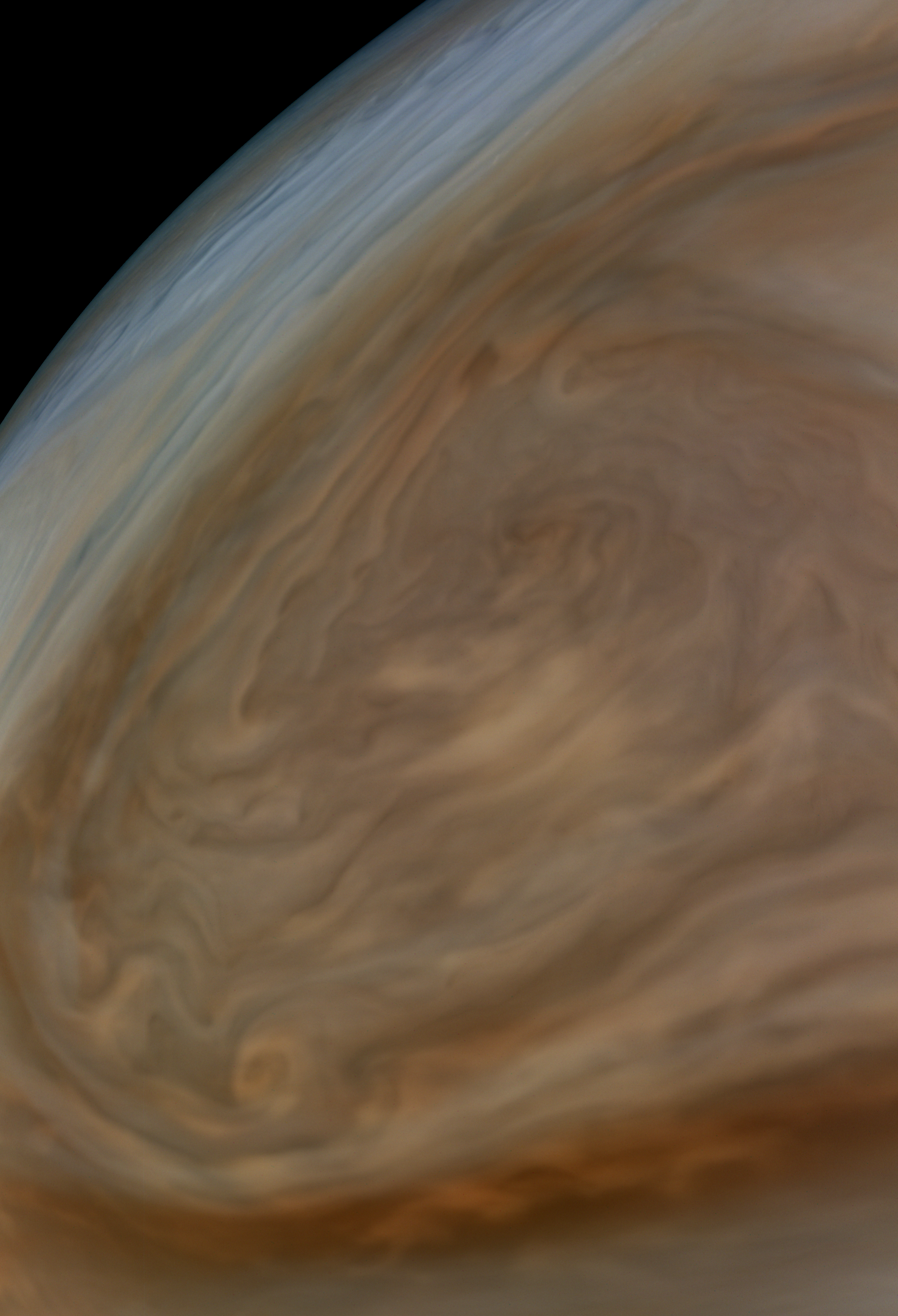Image data collected by JunoCam instrument on Juno spacecraft from an altitude of 3452.86 km at 2018-10-29T21:08:16