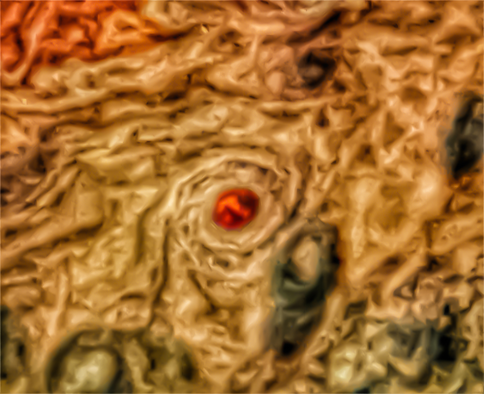 Cyclone with red jewel eye on PJ30 Northern latitude coverage. Highly exaggerated colors and cloud features.