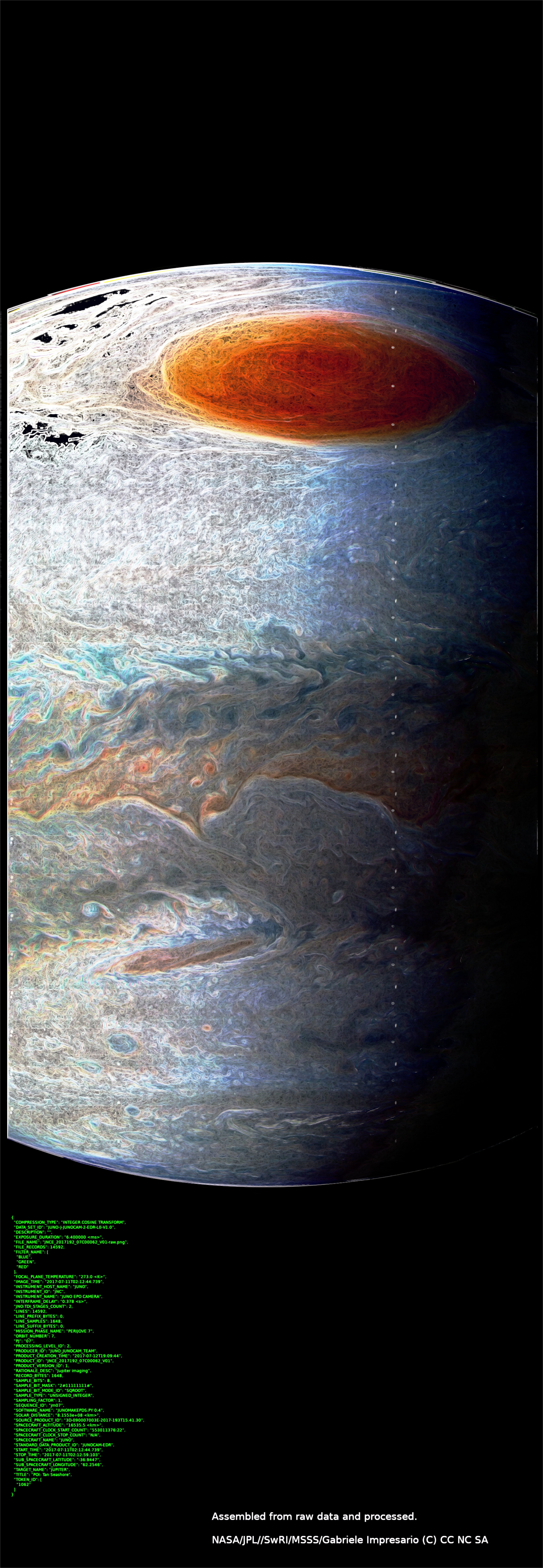 The JunoCam images are identified by a small spacecraft icon. You will see both raw and processed versions of the images as they become available. The JunoCam movie posts have too many images to post individually, so we are making them available for download in batches as zip files.