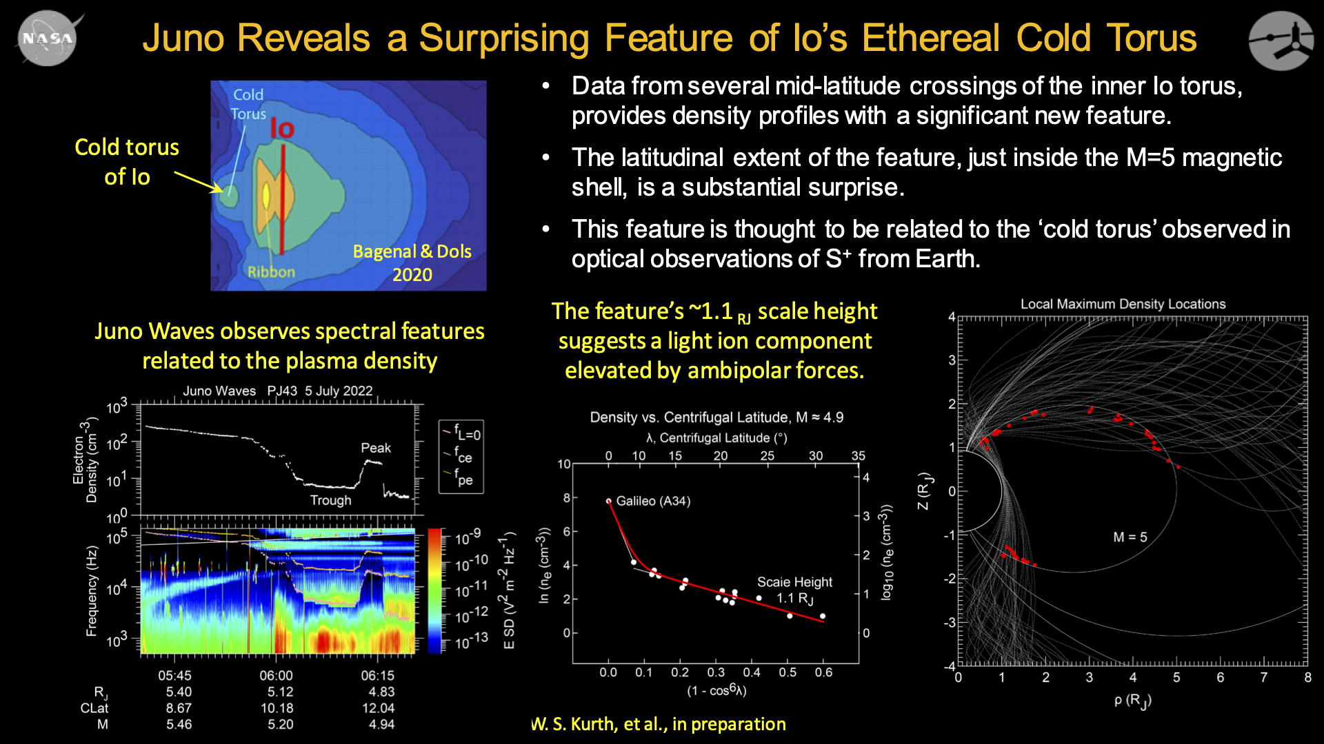 Juno Waves observes spectral features related to the plasma density revealing a surprising feature of Io’s cold torus. The Io torus is created by the constant volcanic eruptions of this tiny moon, generated from the immense tidal forces that squeeze Io as it orbits around Jupiter.